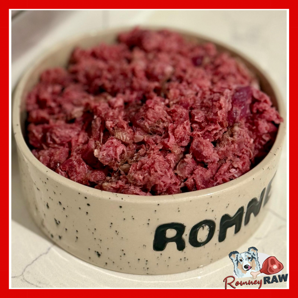 Free Range British Turkey (30% of which 5% is bone), British Goose (40% of which 5% is bone), British Beef Heart (10%), Free Range Pig Liver (5%), British Ox Kidney (5%).