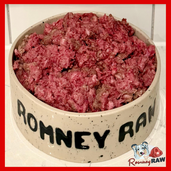 Goose 30% (of which 10% is bone), Turkey 30%, Beef Trim 20%, Pork Heart 10%, Pork Liver 5%, Pork Kidney 5%.