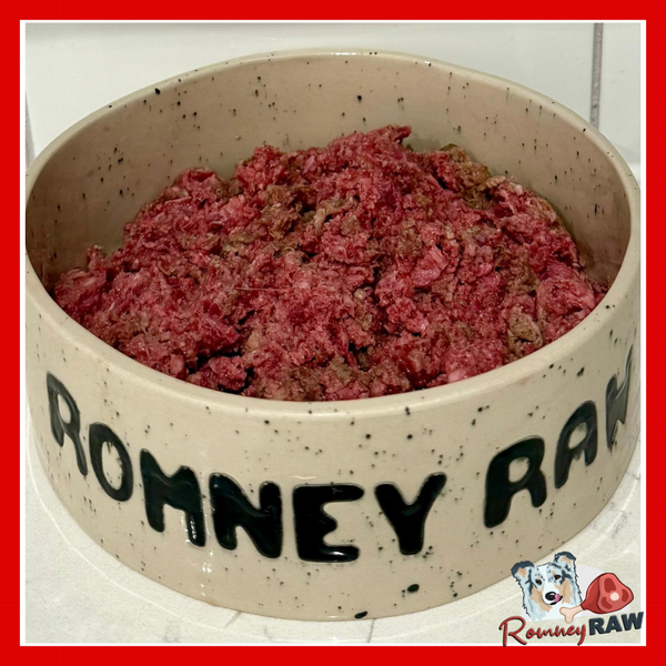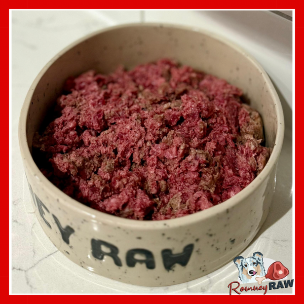 60% British Beef (Meat Chunks / Heart), 30% British Duck with Bone, 10% British Beef Offal (Liver/Kidney/Spleen)