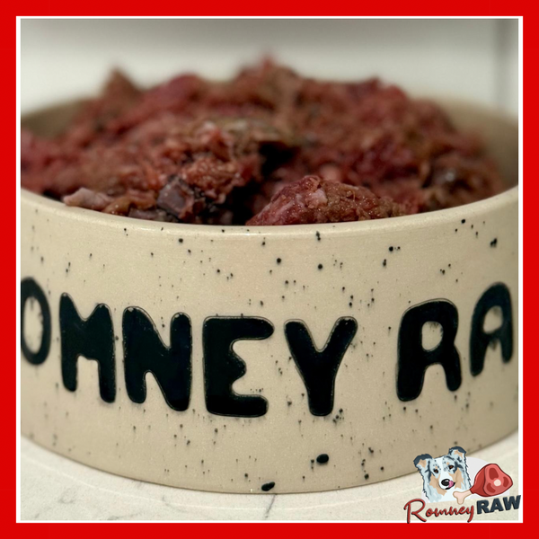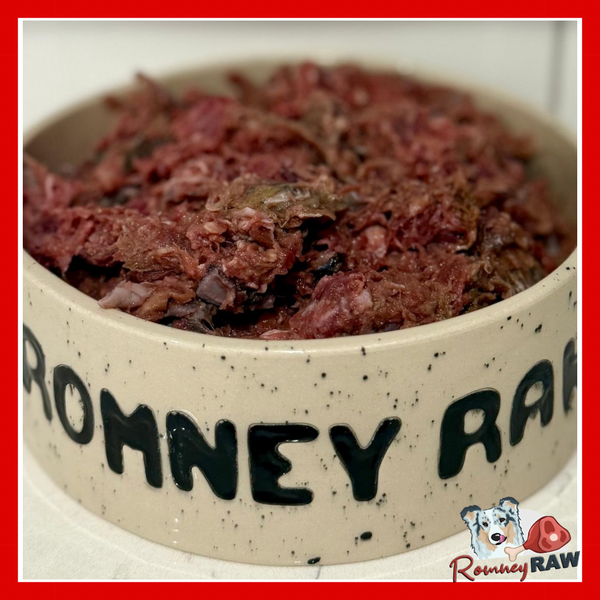 40% Salmon, 40% Venison, 10% Lamb Offal and 10% Bone.